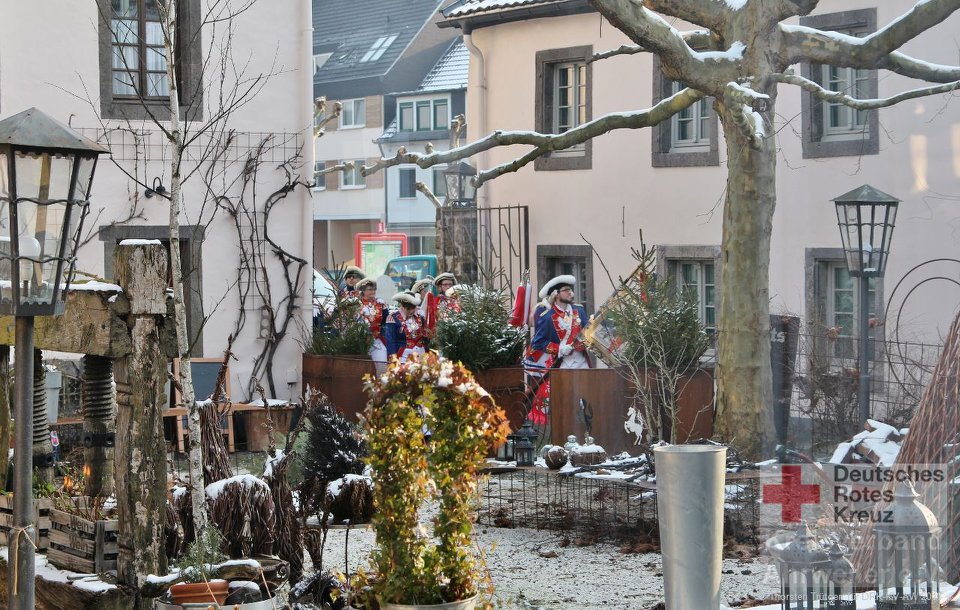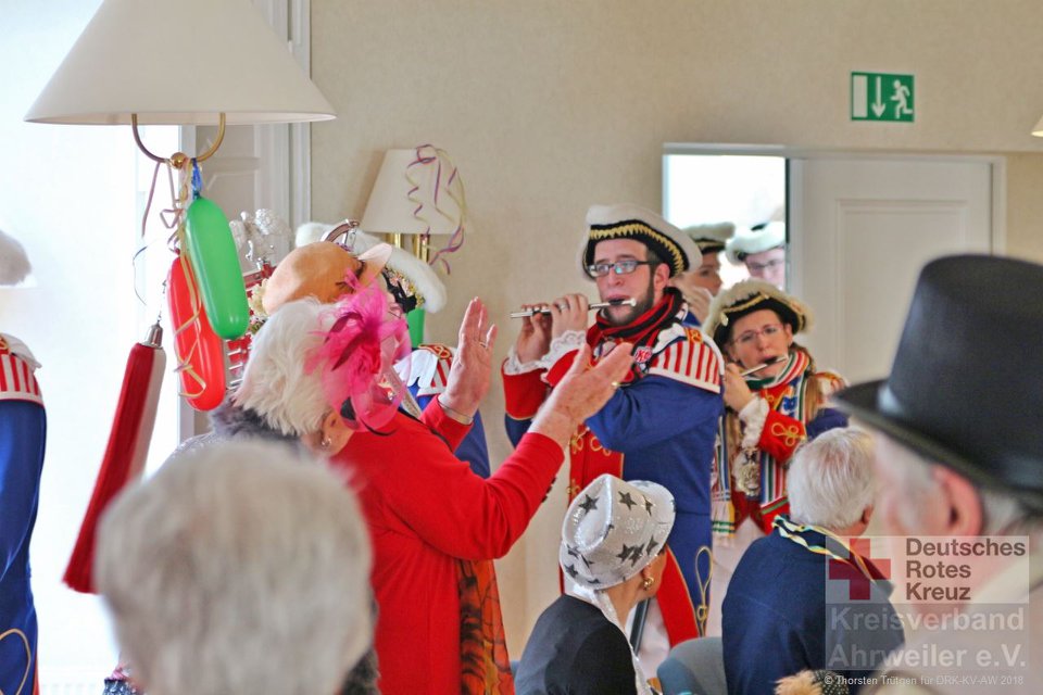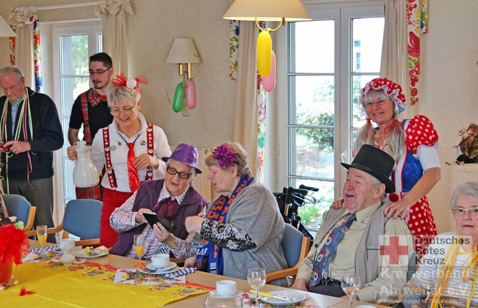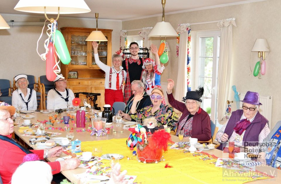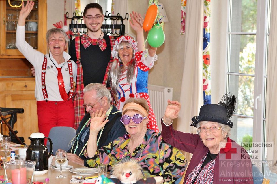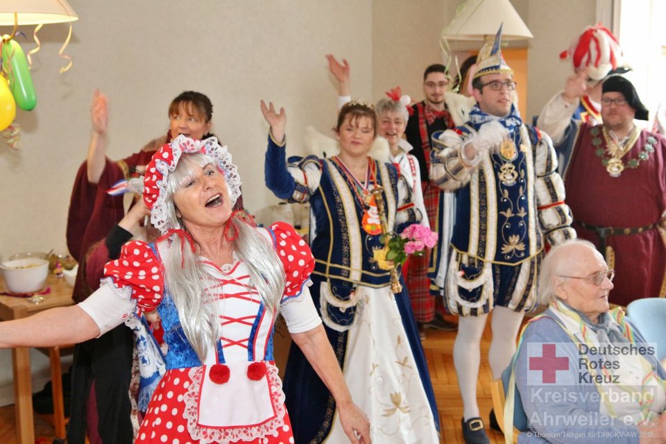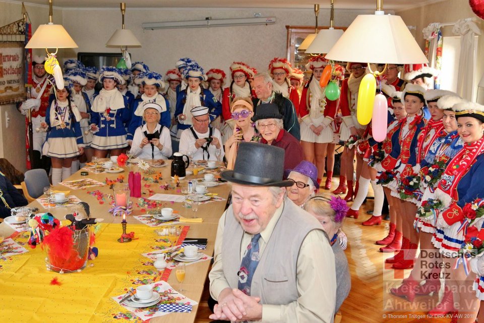 Bad Breisig. Um 9:11 Uhr trafen sich das Team des Betreuungsstützpunktes vom Deutschen Roten Kreuz (DRK) und die Bewohner vom betreuten Wohnen „Weißes Ross“ in Bad Breisig im Mehrzweckraum zum traditionellen Karnevalsbrunch. Gegen 10:45 Uhr zogen Bad Breisigs amtierende Tollitäten Prinz Michael I. und Prinzessin Silke I. (Matern) mit großem Gefolge der Karnevalsgesellschaft in das Weiße Ross ein. Mit ihrem närrischen Aufmarsch lassen die Bad Breisiger Karnevalisten die Bewohner bereits seit vielen Jahren am jecken Treiben in der Brunnenstadt teilhaben.