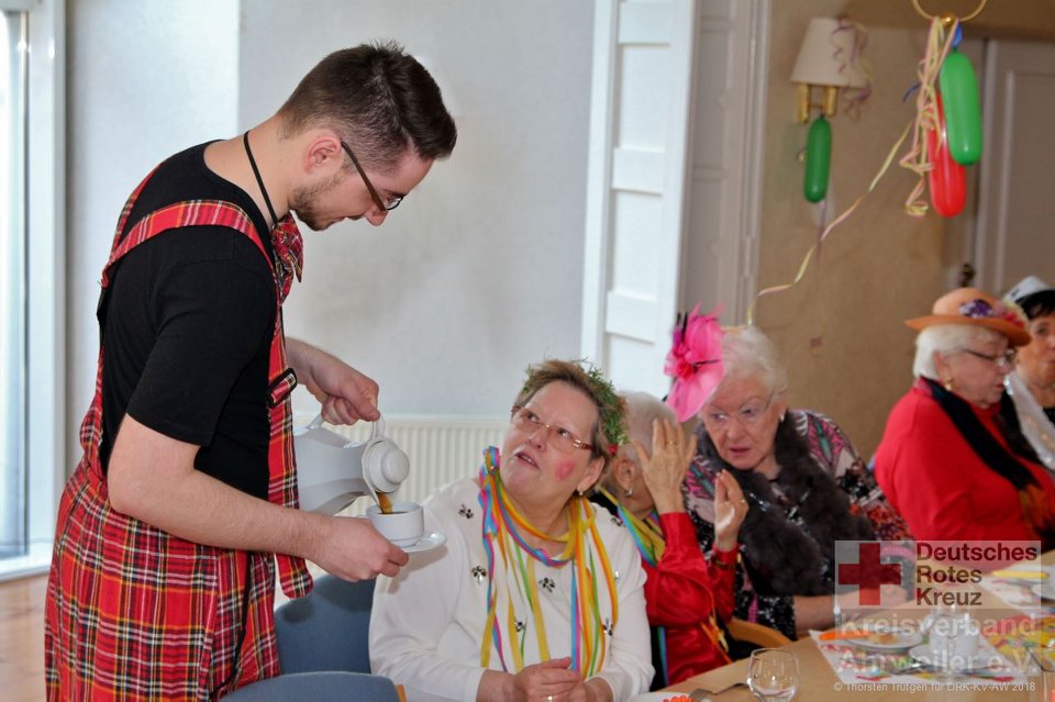 Die Rotkreuzmitarbeiterinnen Petra Schütz, Sabine Gremmler und Freiwilligendienstleistender Philipp Hennes hatten zusammen mit den Bewohnern ein köstliches Buffet für den beliebten Karnevalsbrunch hergerichtet. Mit hausgemachten Salaten, selbst gebackenen Kuchen und herzhaftem Gebäck bot das Buffet eine reichhaltige Auswahl. Zur Mittagszeit wurde die von den Bewohnern geschätzte hausgemachte Hühnerbrühe serviert, die seit vielen Jahren von Irmgard Schmitz aus Brohl zubereitet und gespendet wird.
